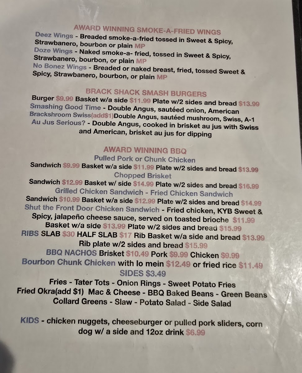 Naked smoke-a- fried, tossed in Sweet & Spicy, Strawbanero, bourbon, or plain